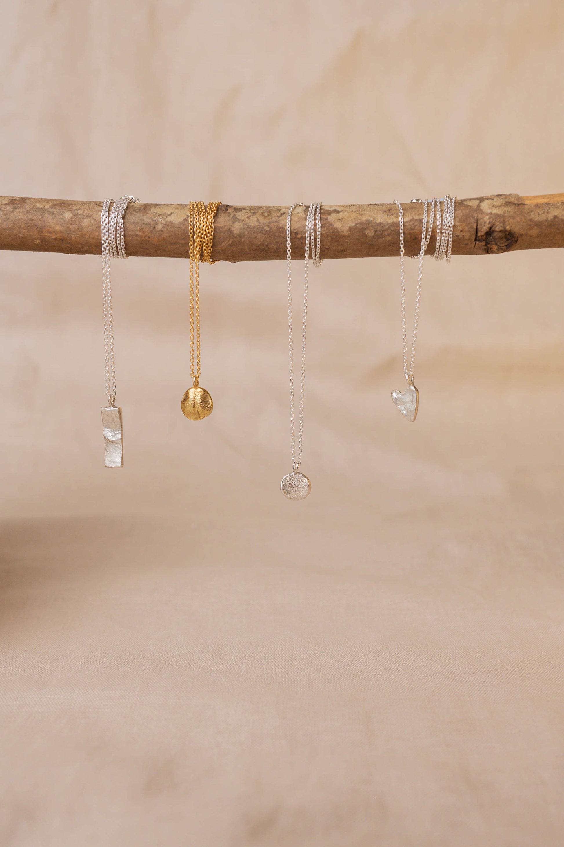 Because each piece is handmade and formed from your unique impressions, natural variation in shape and size is part of what makes your jewellery one of a kind.